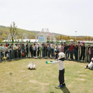 襄阳市襄城区卧龙镇朝阳村“卧龙月季花海”举办的春季趣味活动。新华社发