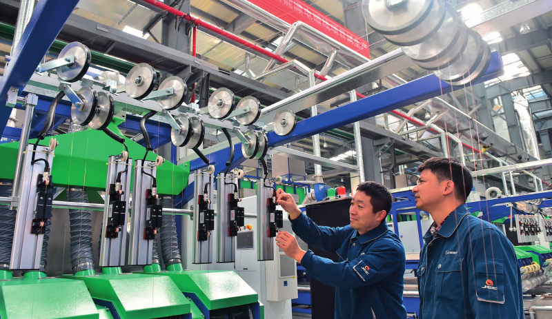 在江西江铜华东电工新材料科技有限公司生产车间,技术工人在生产线上巡检设备(资料照片)。张善臣摄/本刊