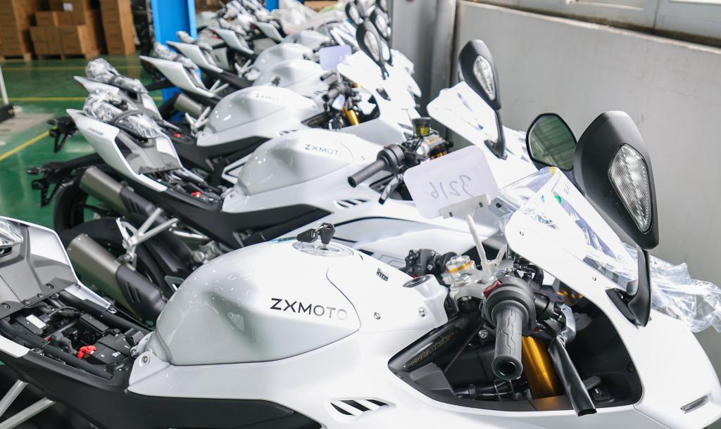 下线检测完的整车在重庆两江新区“张雪机车”生产车间整齐排列。新华社记者 黄伟 摄