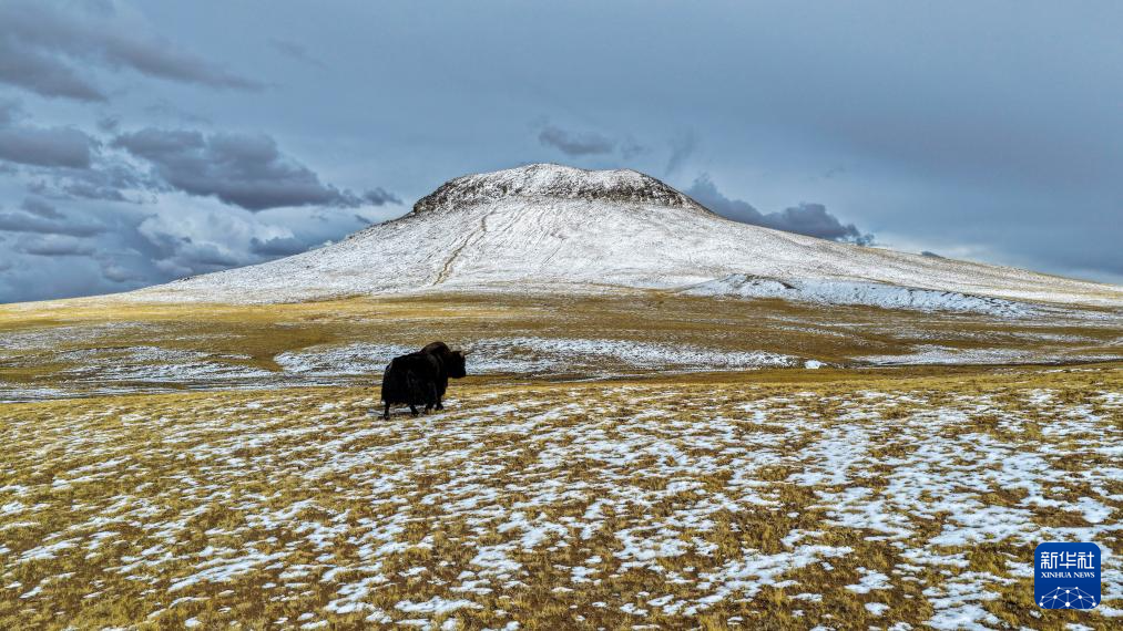 4月10日在“巴毛穷宗”地区拍摄的野牦牛(无人机照片)。