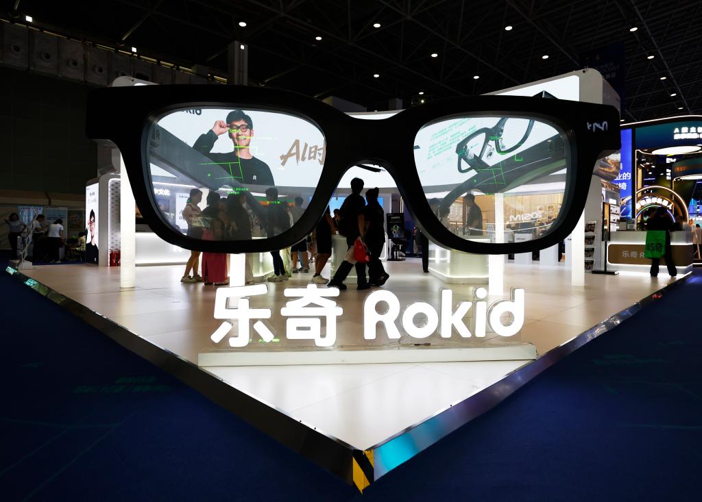 在乐奇Rokid展台,一款外观设计接近传统眼镜,可通过语音交互或触碰镜腿实现提词、拍摄、翻译、导航、支付、AI问答等功能的AI眼镜,戴上它,科幻电影里的样子,就在眼前。
