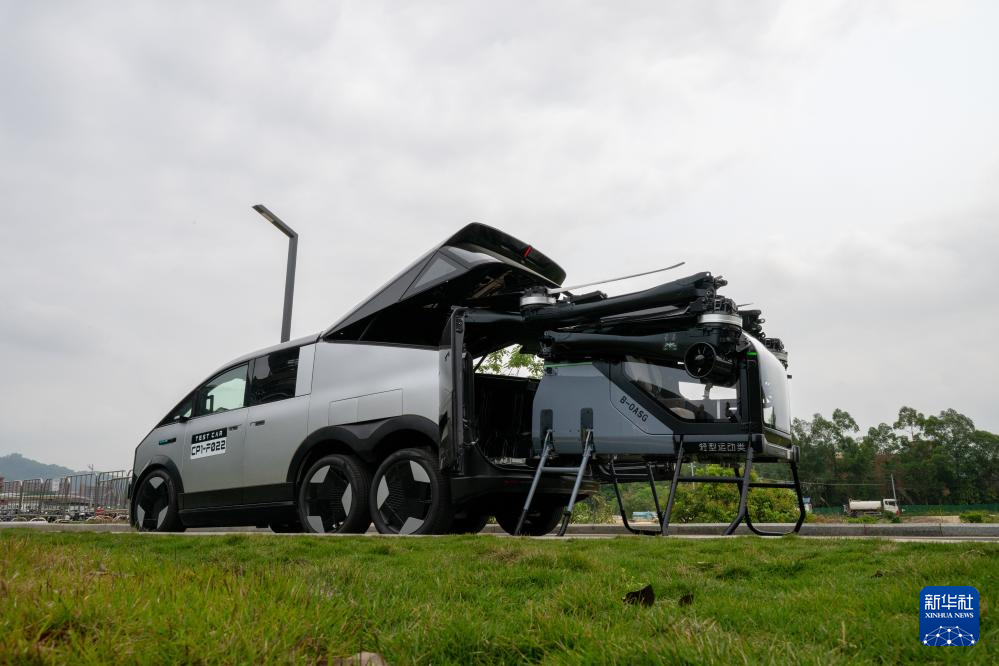 3月27日,在广州市天河区的小鹏科技园,“陆地航母”进行陆行体、飞行体自动分离演示。新华社记者 刘梦琪 摄
