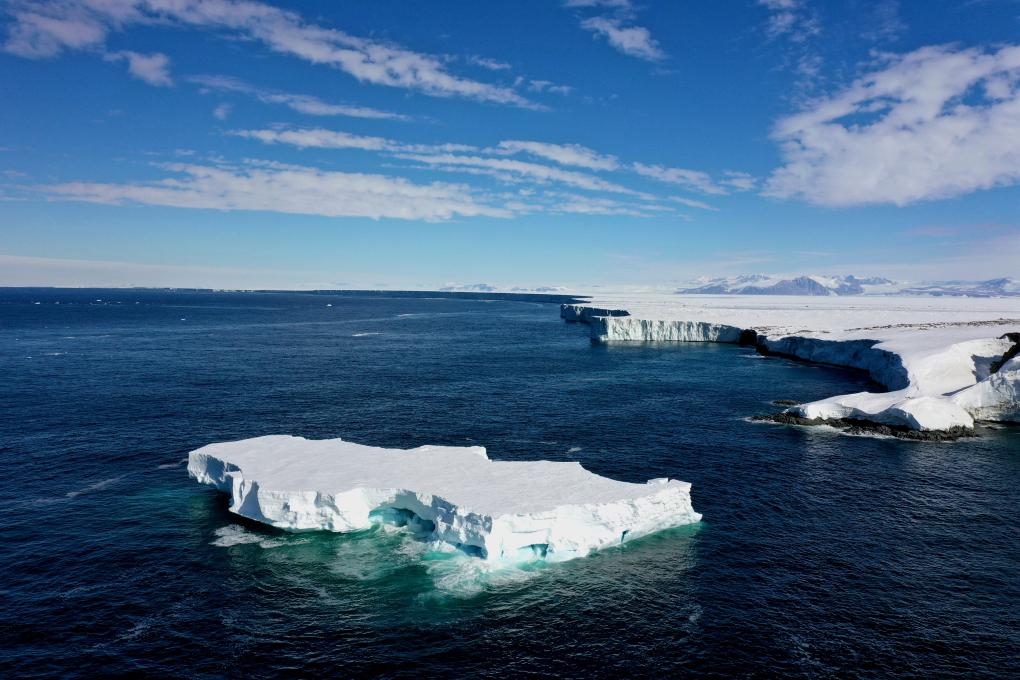 从南极南森冰架脱落的冰山。新华社发(郑雷摄)