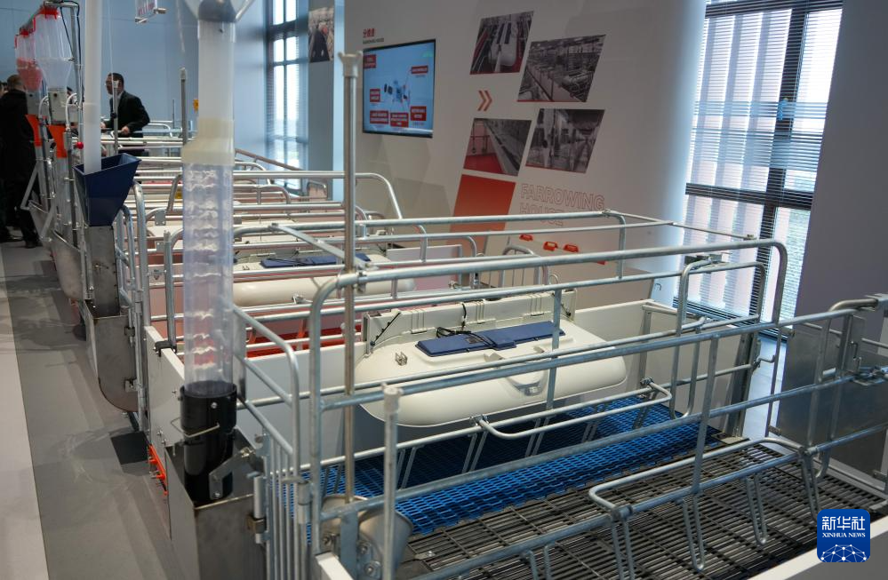 这是在大牧人机械(胶州)有限公司展示的畜禽养殖装备(3月26日摄)。新华社记者 徐速绘 摄