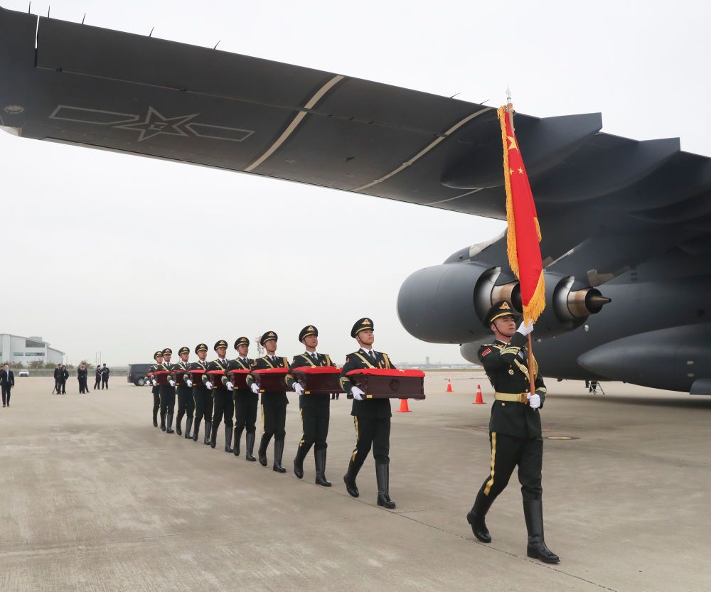 4月22日上午,中韩双方在韩国仁川国际机场共同举行交接仪式,韩方向中方移交第十三批12位在韩中国人民志愿军烈士遗骸及146件遗物。