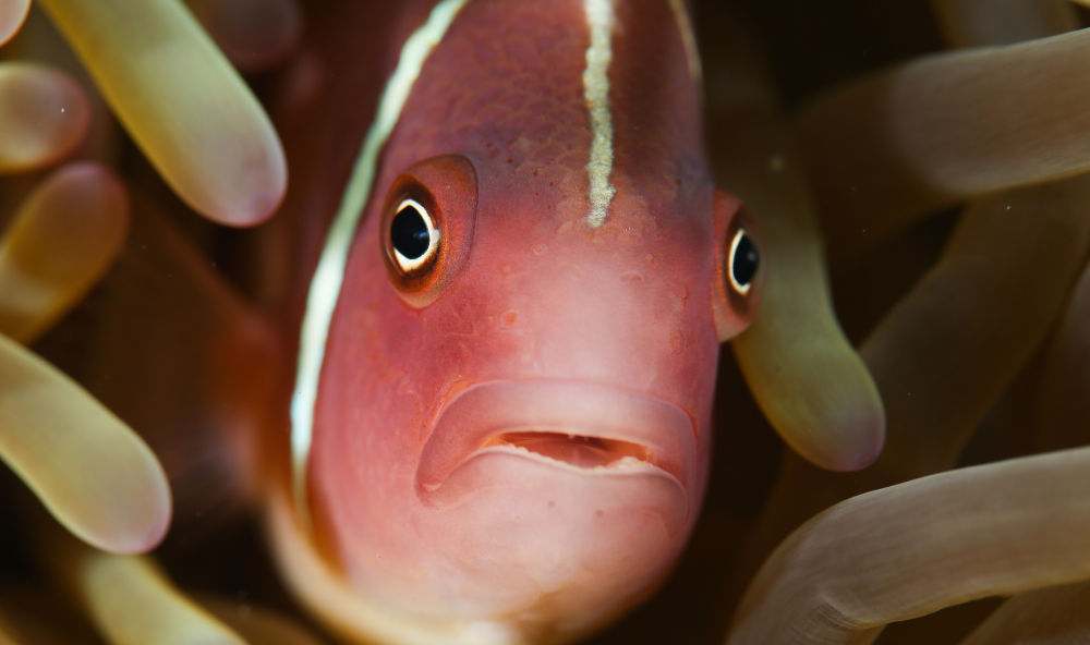 这是蜈支洲岛海域海洋牧场中藏身于海葵内的小丑鱼(2021年5月23日摄)。新华社记者 杨冠宇 摄