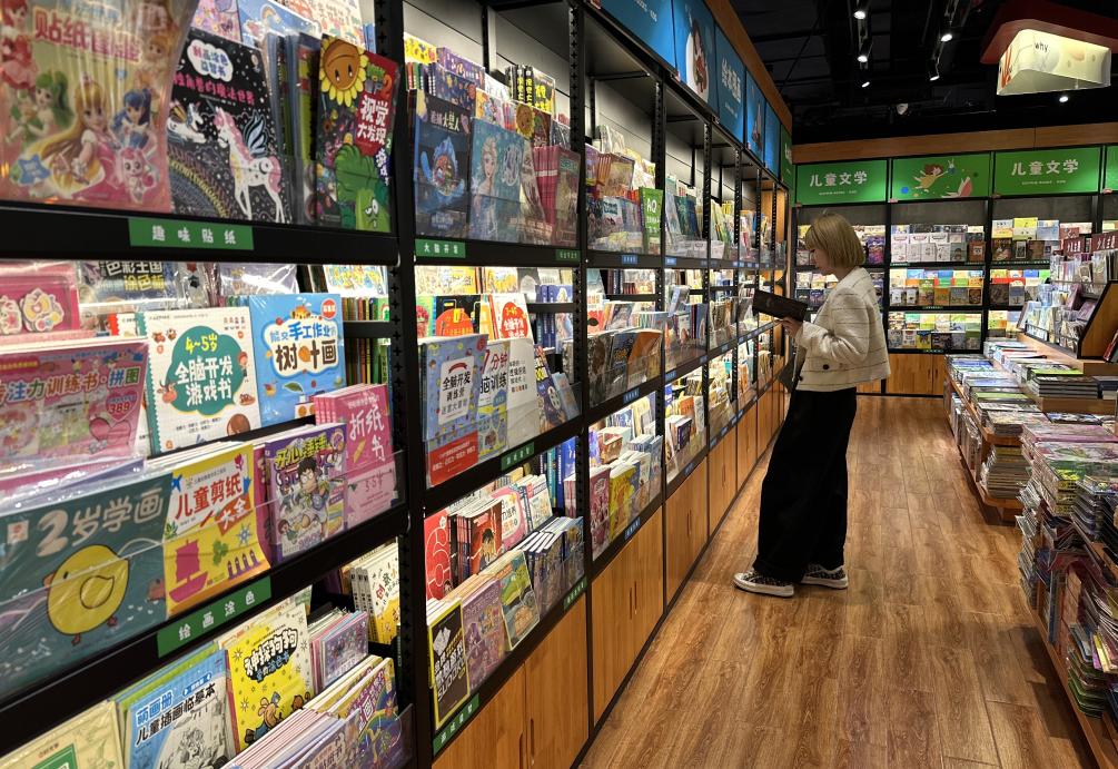 4月21日,一位长春市民在书店里选购儿童图书。新华社记者 司晓帅 摄