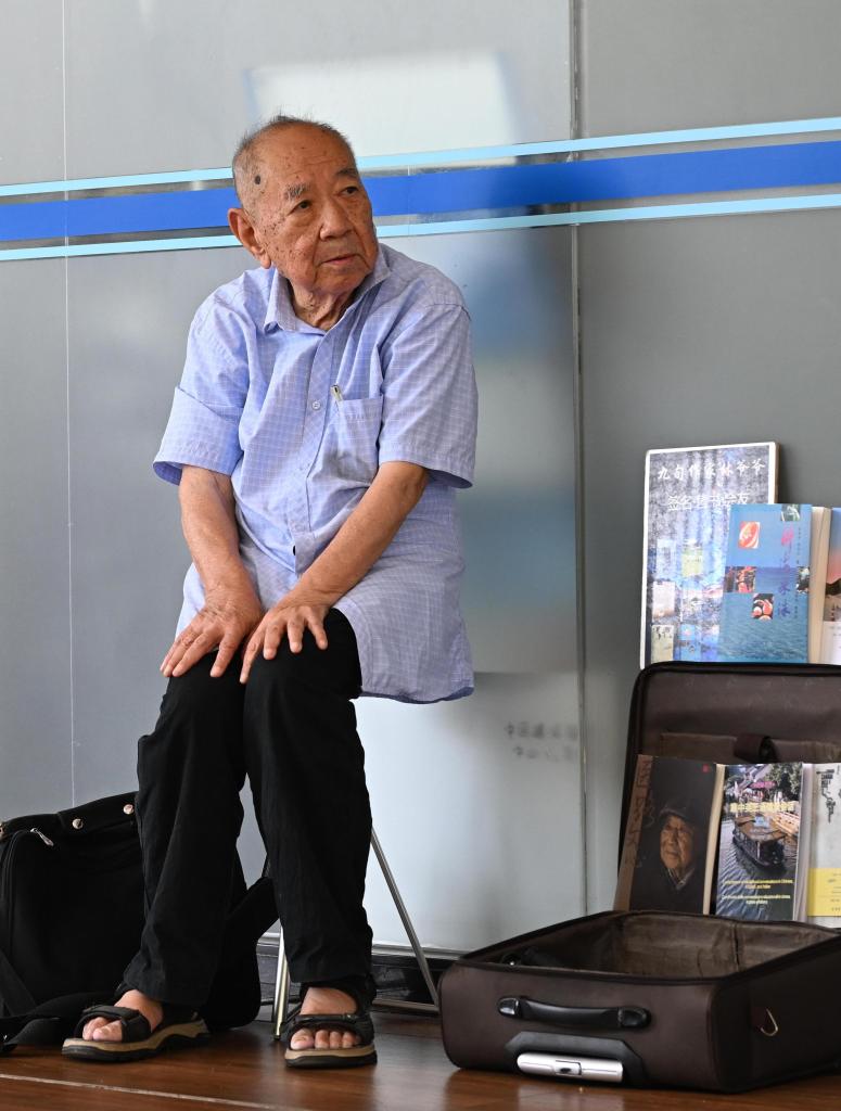 ↑4月19日,林宝山在家中展示他的书《寻找一个人》。