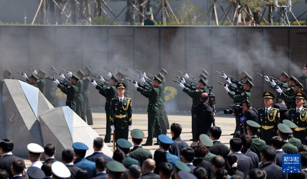 4月23日,礼兵鸣枪向志愿军烈士致敬。