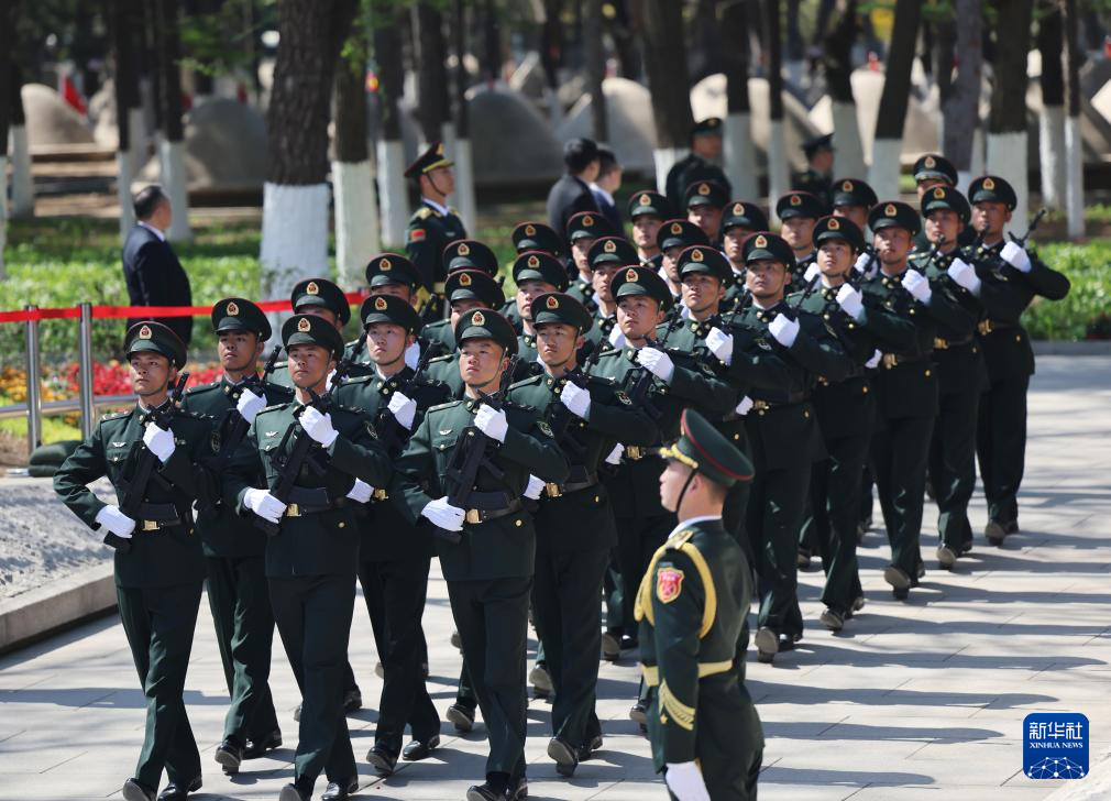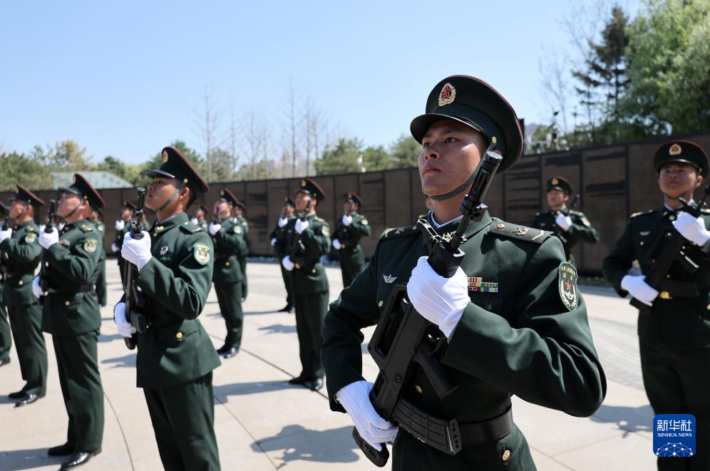 4月23日,在沈阳抗美援朝烈士陵园,礼兵整齐列队。
