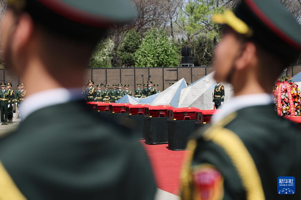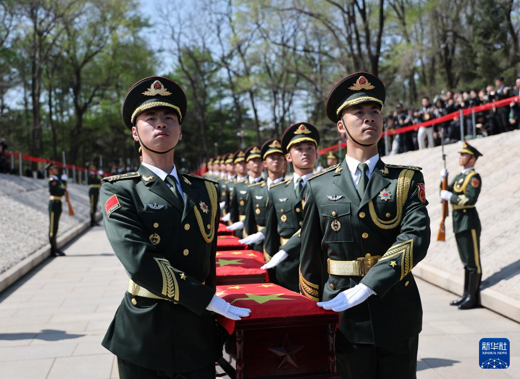 4月23日,第十三批在韩中国人民志愿军烈士遗骸安葬仪式在沈阳抗美援朝烈士陵园举行。12位志愿军烈士英灵在阔别祖国70多年后回到中华大地安息。