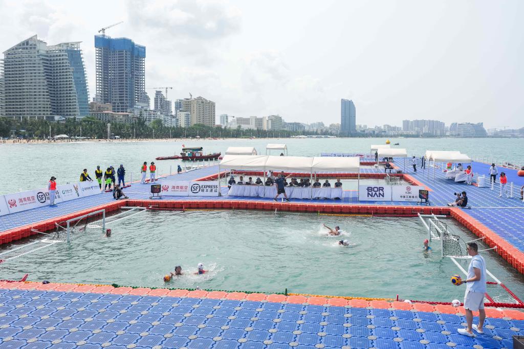 4月22日,亚沙会女子水球比赛在海水场地中进行。新华社记者 陈思汗 摄