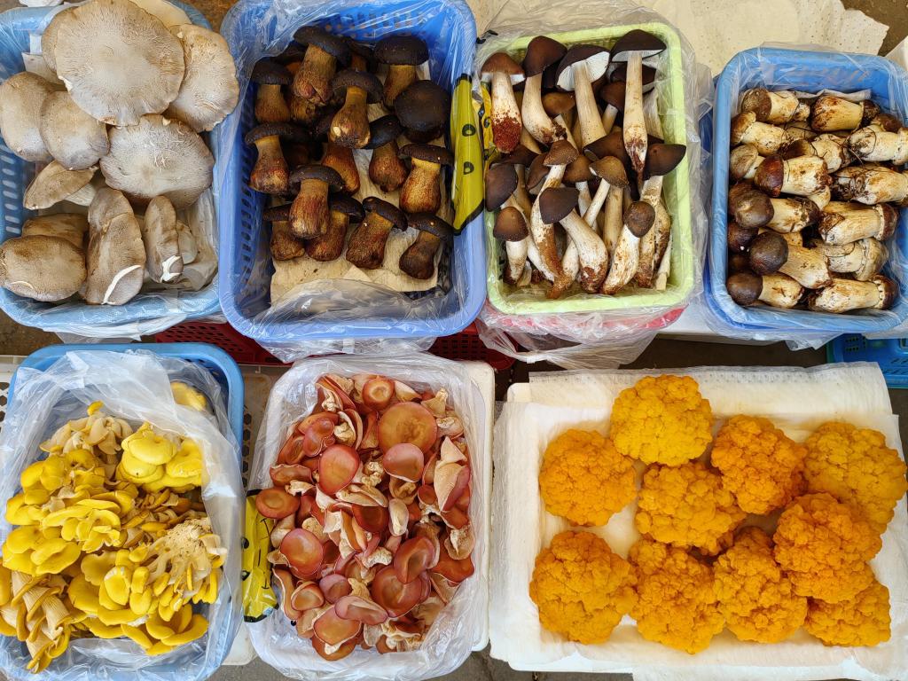 在云南木水花野生菌交易中心,摊位上摆放着春季新上市的野生菌。新华社记者 荆昭延 摄