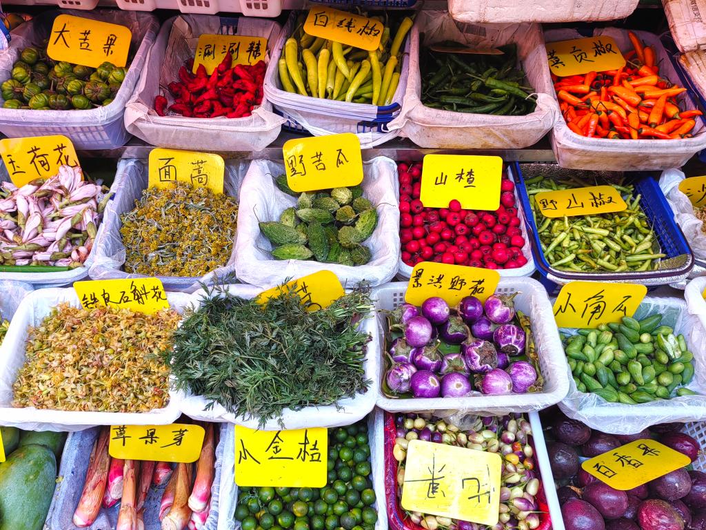 在云南省昆明市大观篆新农贸市场,摊位上摆放着春季新上市的野菜。新华社记者 荆昭延 摄