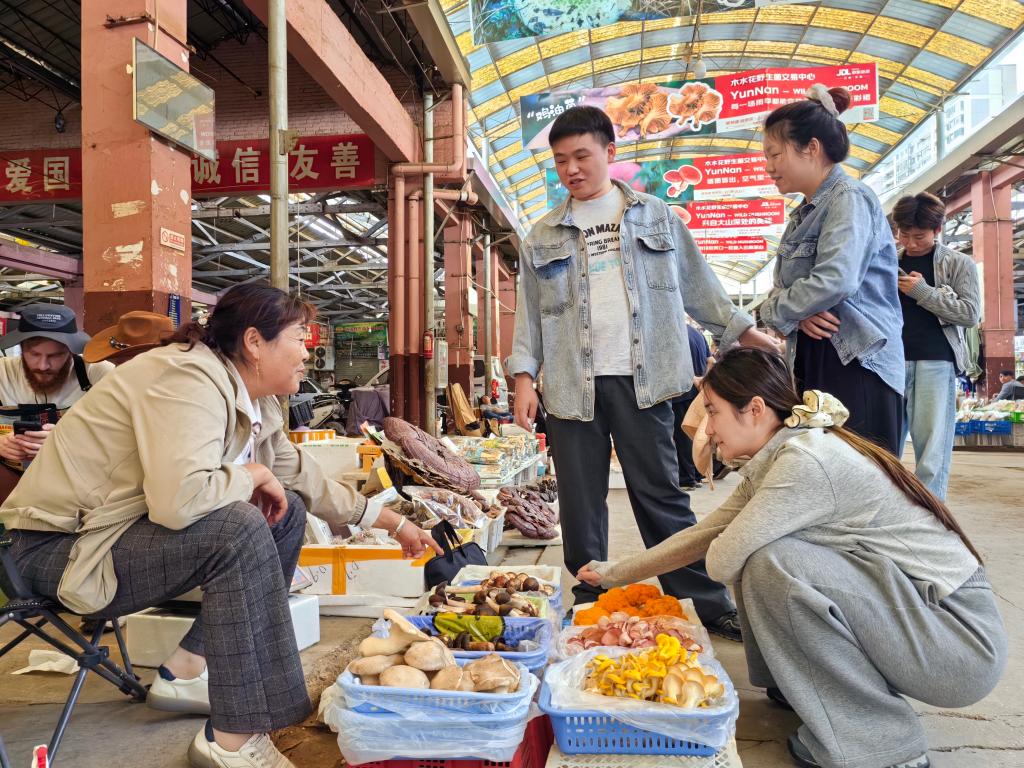 在云南木水花野生菌交易中心,顾客在购买春季新上市的野生菌。新华社记者 荆昭延 摄