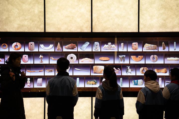 2026年1月13日,安徽省马鞍山市含山县铜闸学校的学生在凌家滩遗址博物馆参观。2025年5月,凌家滩遗址博物馆开馆运营,集中展出陶器、玉器、石器、骨器等文物约1100件。