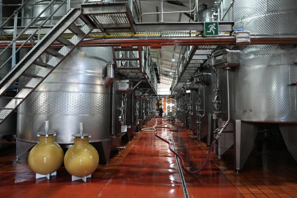 这是3月31日在南非开普敦德班维尔的黛眉斯多酒庄拍摄的酿酒车间一角。新华社记者 王雷 摄