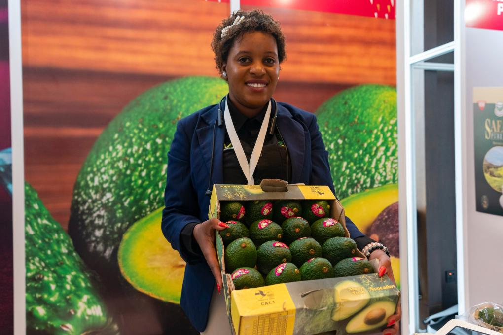 3月23日,肯尼亚内罗毕,商家在肯尼亚享受零关税出口中国商品展示会现场展示肯尼亚牛油果。新华社记者 谢剑飞 摄
