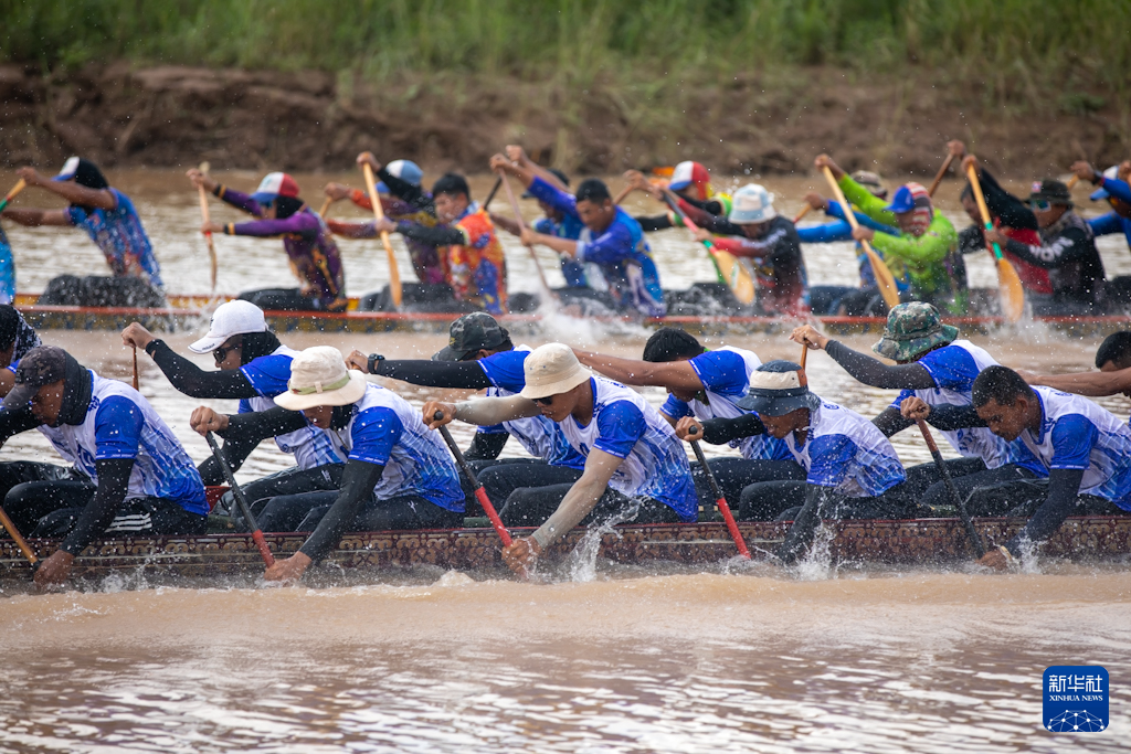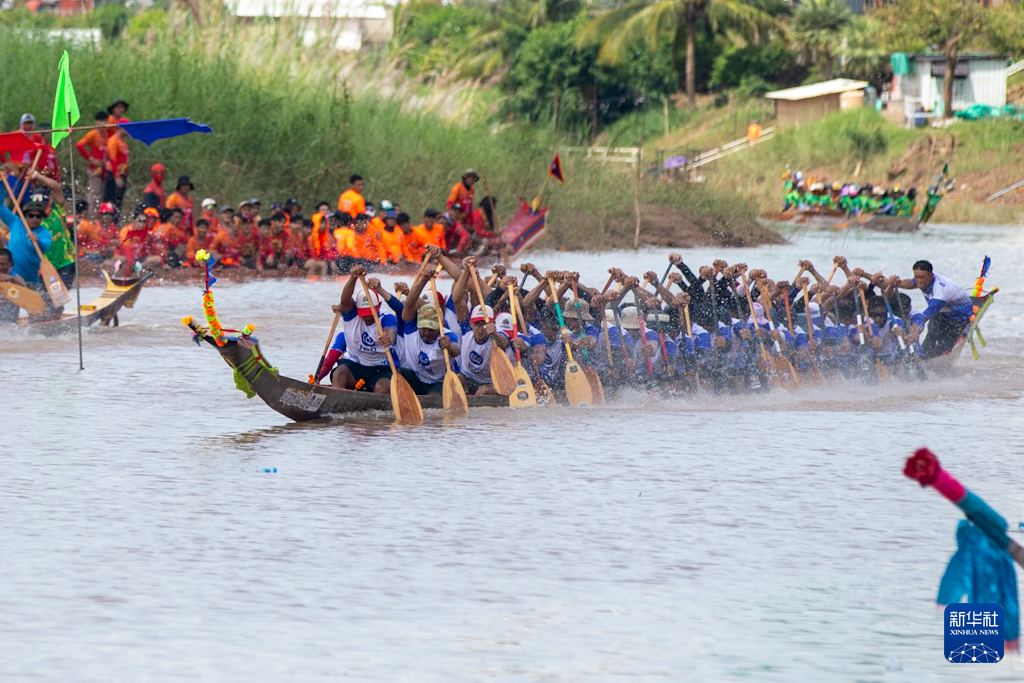 10月8日,龙舟竞速活动在老挝万象湄公河上进行。