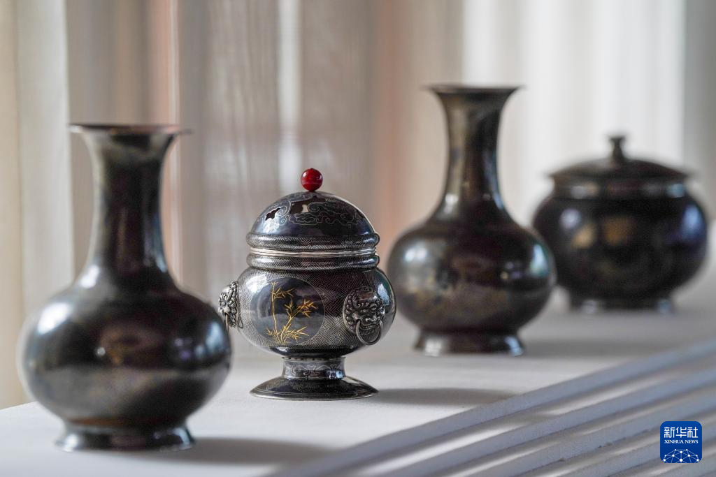 10月25日在昆明乌铜走银传习馆拍摄的乌铜走银作品。