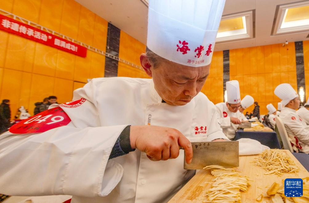 12月23日,参加活动的师傅展示现场制作的干丝。