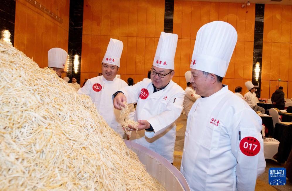 12月23日,泰州早茶“百人炫技千斤丝”非遗传承活动在江苏省泰州市海陵区泰州宾馆举行,百位干丝制作师傅同台献艺,展示泰州早茶中干丝的制作技艺。目前,泰州早茶已形成标准化体系,当地政府将持续深化文商旅融合,助推泰州早茶产业发展。