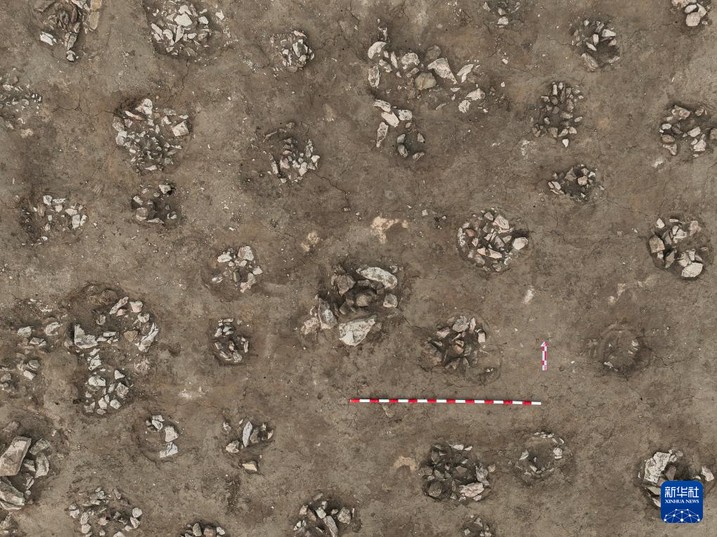 河北张家口市郑家沟红山文化遗址1号积石冢祭祀坑平面分布情况(资料照片)。
