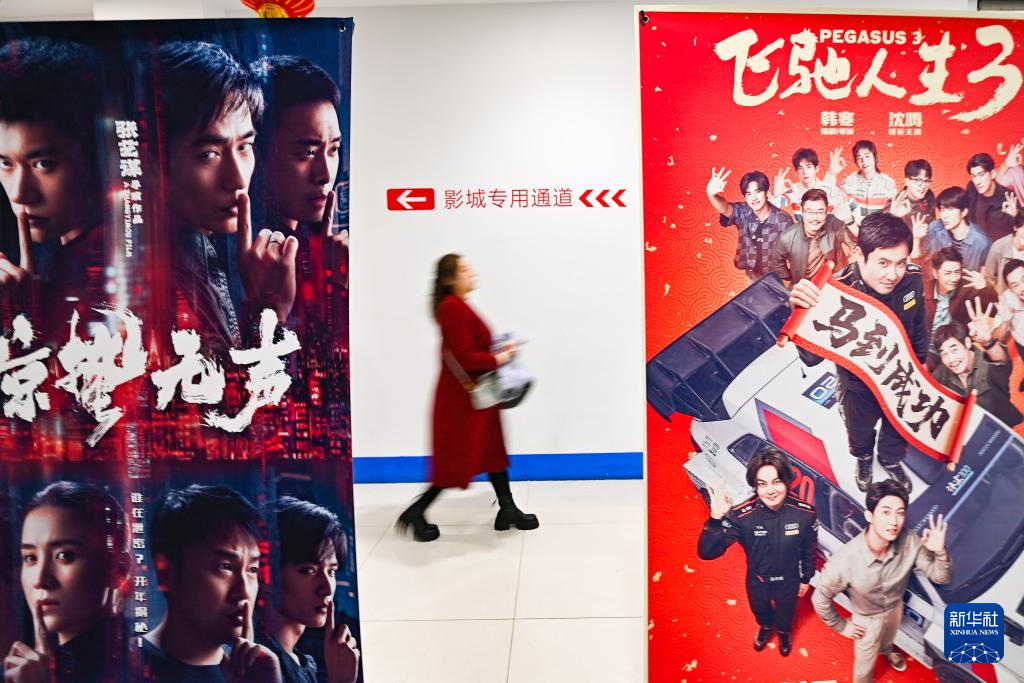 2月20日,在山东省青州市一家影城,观众从电影海报旁经过。