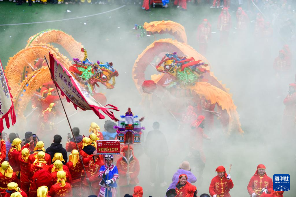 2月27日,人们在贵州省石阡县参加仡佬毛龙节舞龙展演活动。
