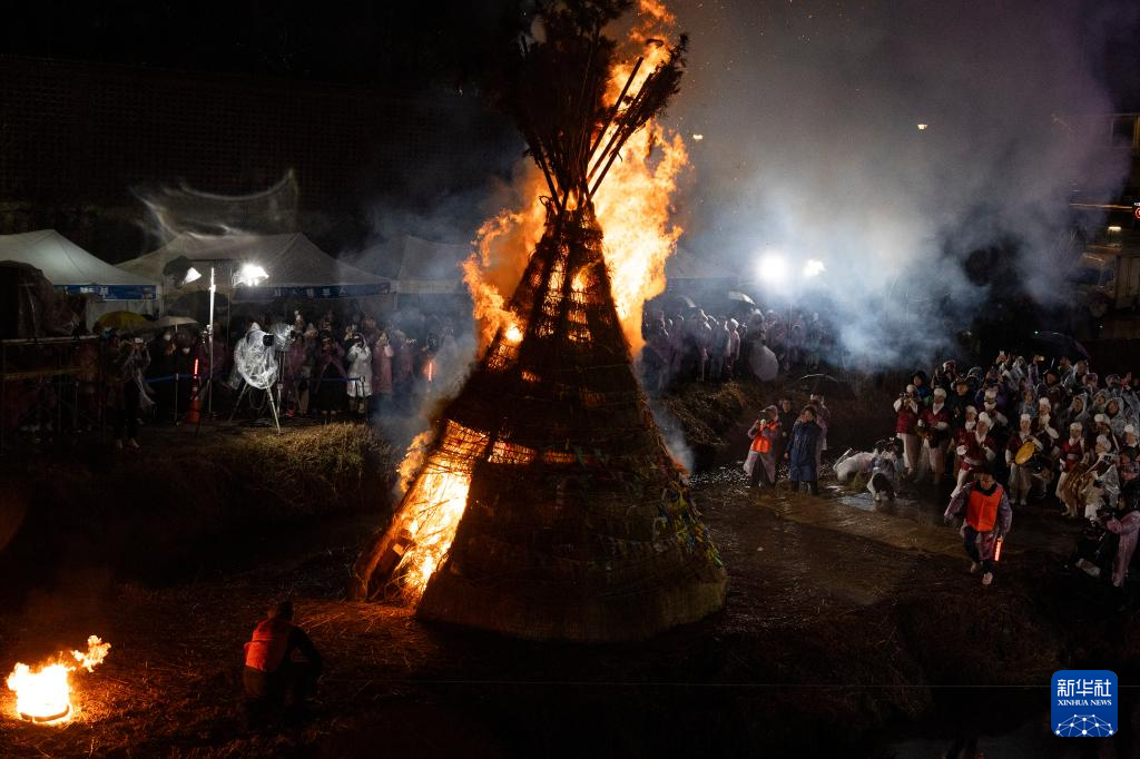 3月2日,韩国民众在首尔举行传统民俗活动“烧月屋”,迎接即将到来的正月十五,祈求新年的幸福如意。