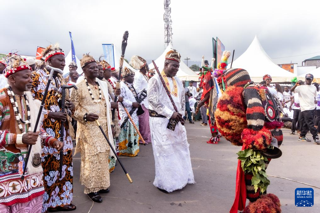 2月28日,在喀麦隆西南大区首府布埃亚,人们参加西南文化节活动。