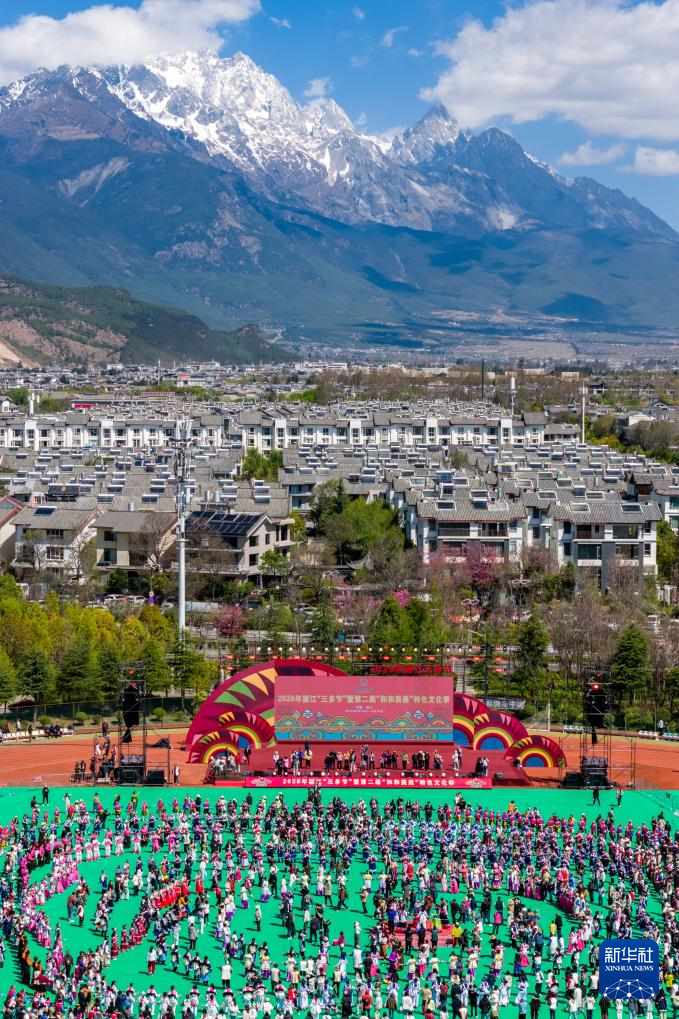3月26日,丽江“三多节”暨第二届“和和美美”特色文化季在云南丽江市体育发展中心主会场及多个分会场同步拉开帷幕。本次活动涵盖“嘎咪”火炬传递、千人打跳、长街宴、文艺演出等内容,将持续至4月12日。三多节是纳西族的标志性民俗节日,2021年被列入第五批国家级非物质文化遗产代表性项目名录。