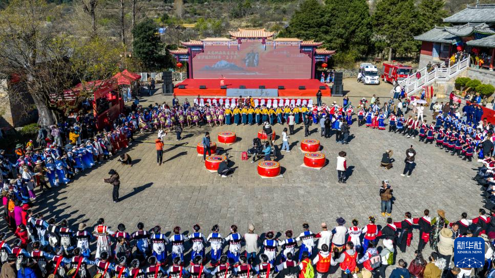 3月26日,人们在丽江市玉龙县白沙镇打跳(无人机照片)。