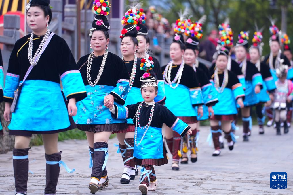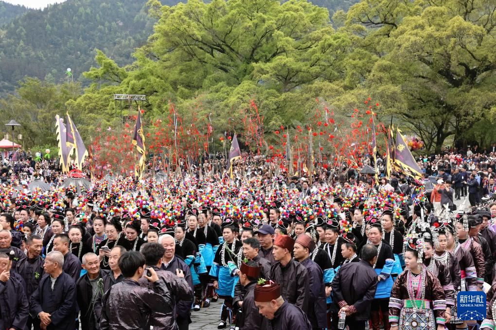 3月28日,侗族群众在贵州省榕江县三宝侗寨参加“萨玛节”活动。