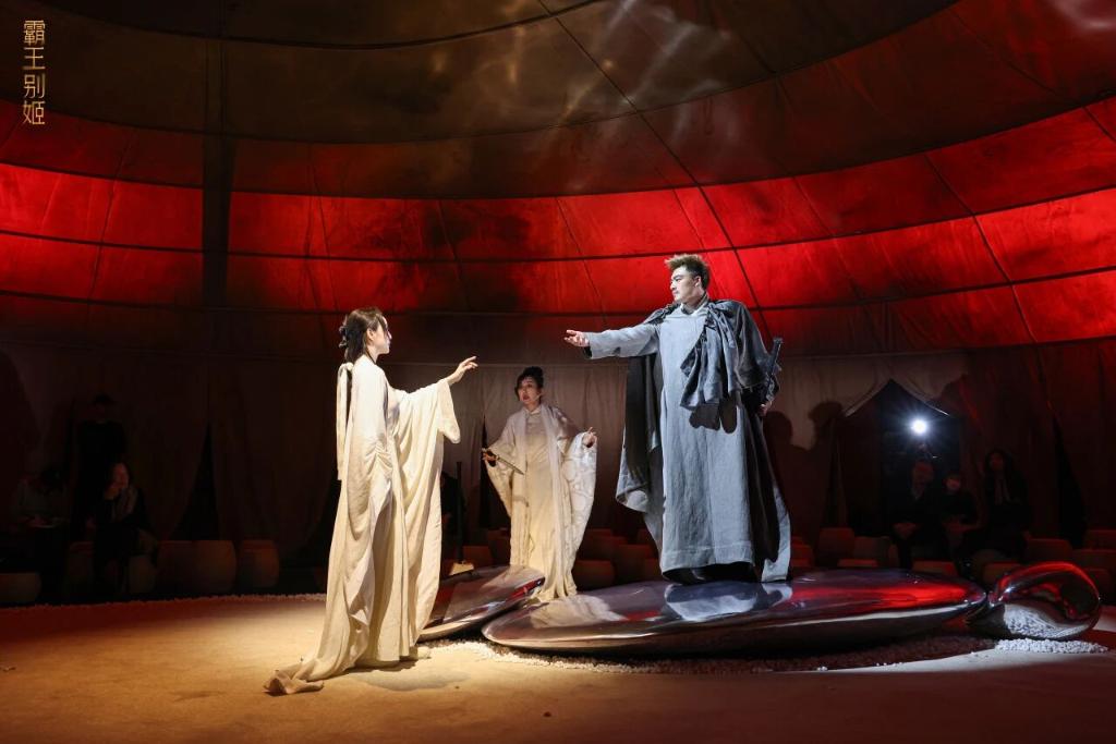 作为《我们的荆轲》后北京人艺排演的第二部莫言话剧作品,《霸王别姬》没有遵循传统线性叙事,而是以虞姬、吕雉两个女性角色的对话开始,穿插她们与项羽的回忆和各自的现实。