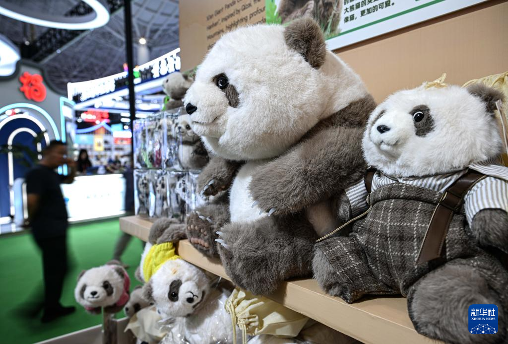 4月15日在第六届消博会上拍摄的秦岭大熊猫文创品牌——“秦憨憨”。