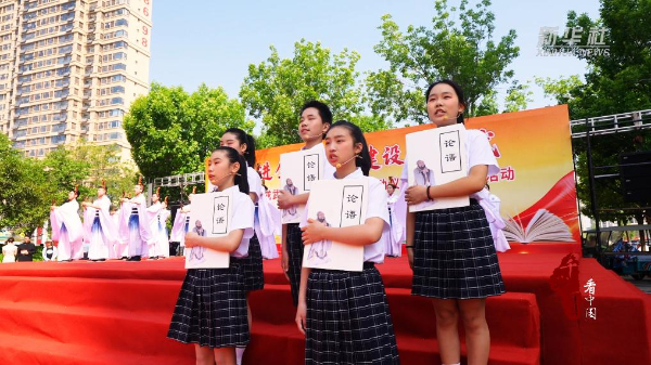 近日,山东省菏泽市成武县启动全民阅读活动周暨文化惠民活动。启动仪式上,当地中小学师生以朗诵、舞蹈等形式,将古籍“搬”上舞台,带领观众穿越千年,与先贤对话。