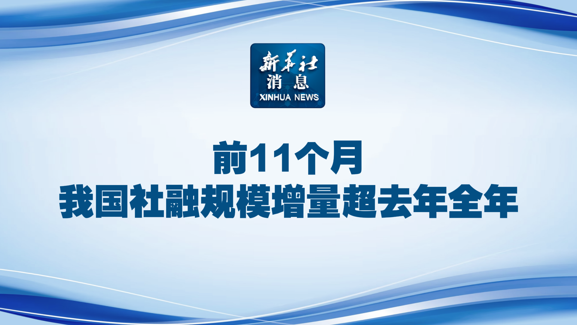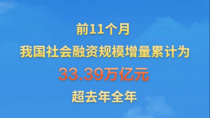新华社消息丨前11个月我国社融规模增量超去年全年
