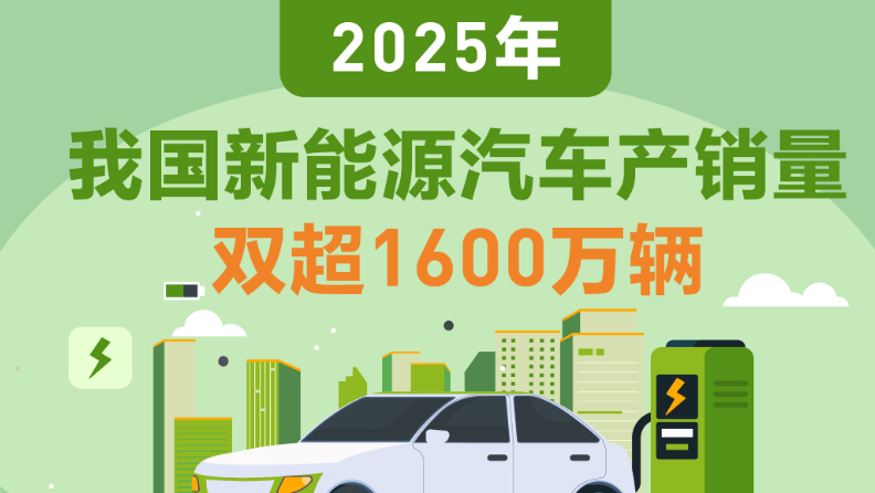 图表丨2025年我国新能源汽车产销量双超1600万辆