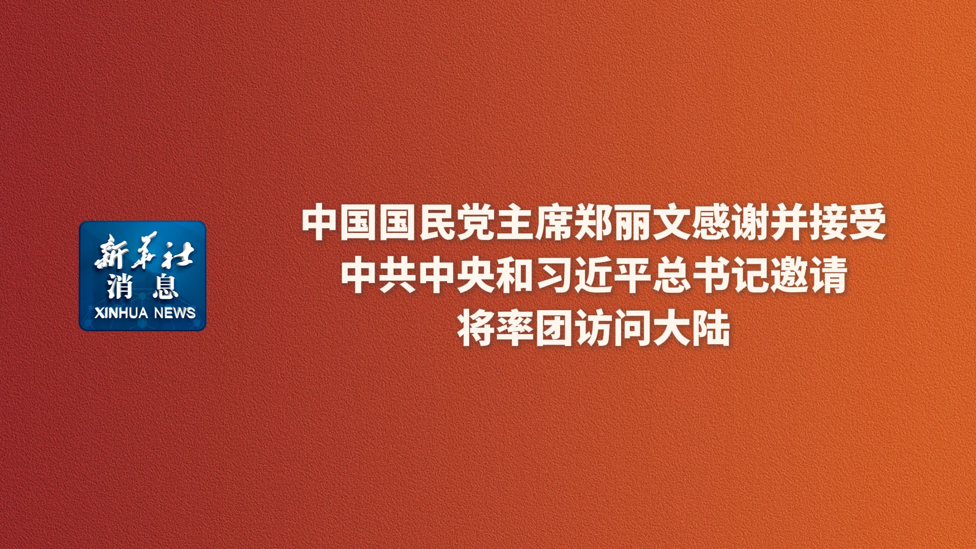 新华社消息丨中国国民党主席郑丽文感谢并接受中共中央和习近平总书记邀请将率团访问大陆