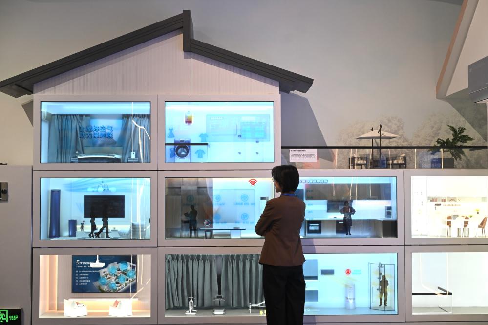 这是在“筑基强国路——中国制造‘十四五’成就展”上展出的智能家居模型(12月29日摄)。