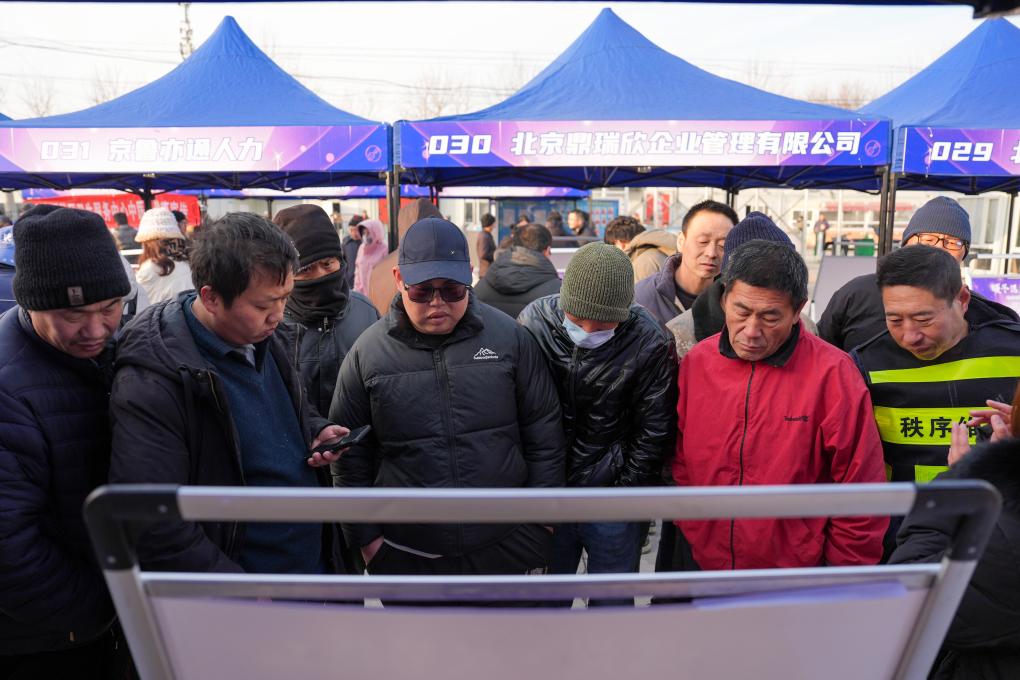 1月9日,求职者在马驹桥零工市场参加专场招聘会。