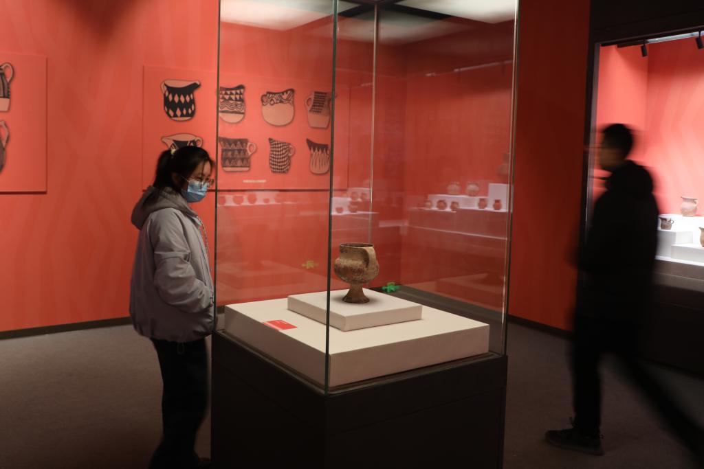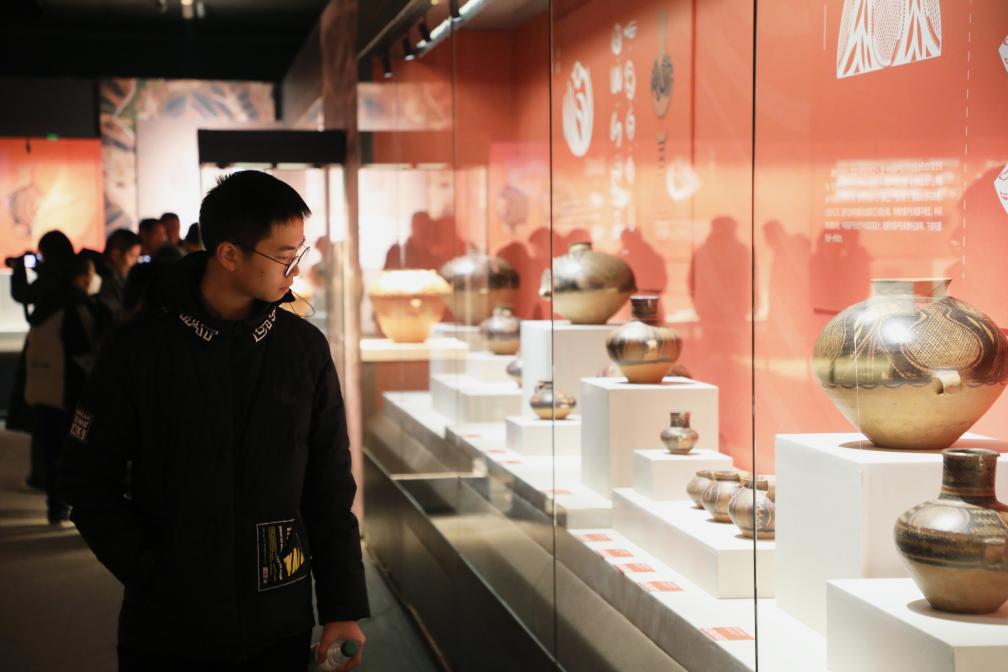 1月13日,观众在甘肃省博物馆参观“从黄河到天山——史前彩陶的西渐之路”文物展。