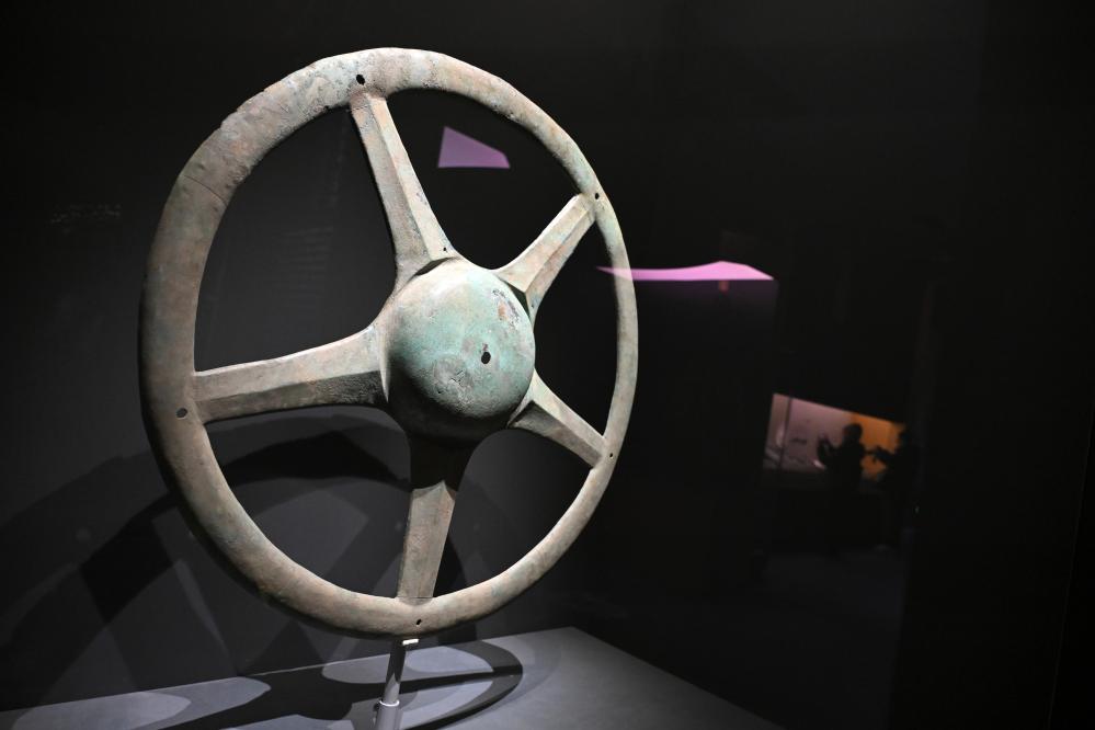 这是展出的太阳形青铜器(1月18日摄)。