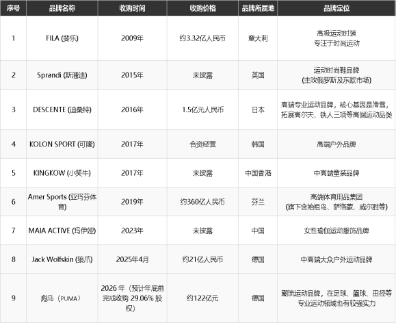 时间拨回2009年。这一年,安踏以3.32亿元的价格从百丽国际手中收购了意大利百年品牌FILA在大中华区的商标拥有权及运营权。而后2016年、2017年、2019年、2023年、2025年,安踏分别拿下了迪桑特、可隆、亚玛芬体育、玛伊娅、狼爪等多个品牌,此外还有多次被传出要被安踏收购的锐步、猛犸象。