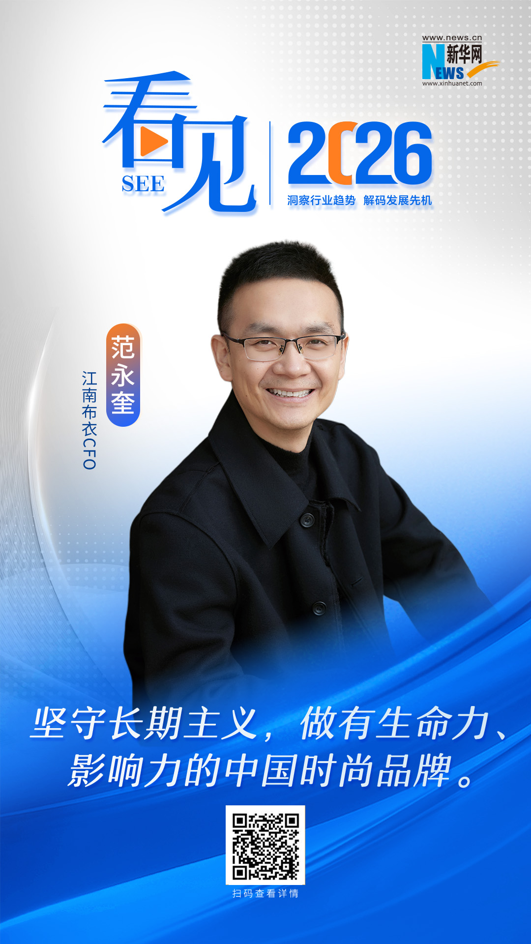 2026年,服饰行业又将如何在挑战中抓住机遇,锚定核心战略实现高质量发展?《看见2026》系列访谈将通过对话行业领军者,解读企业发展战略,传递服饰品牌的价值力量。本期邀请了江南布衣CFO范永奎,结合江南布衣过去一年的成果收获,分享企业发展经验与行业思考,展望未来趋势。
