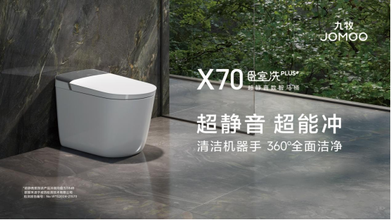 目前,翻转冲刷技术已被应用于九牧X系列高端数智马桶并上市销售,为广大用户带来了“超静音、超能冲、超清新、超洁净”的焕新体验。比如九牧X70智能马桶,它不仅搭载了超静音的翻转冲刷技术,还结合特有的铂金除臭和全水路除菌技术,除臭率和除菌率均高达99%以上。此外,它还自带万向转动的“清洁机器手”技术,不仅除菌除臭效果更好,马桶还能“自清洁”,科技感满满。
