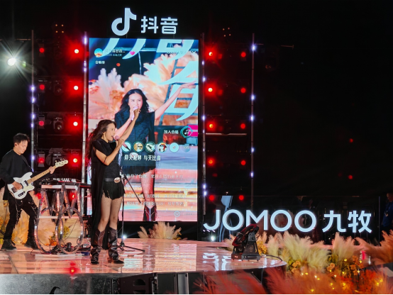 九牧将敦煌文化元素和大漠自然风光融入到一场极具现代化和科技感的视听演唱派对中,并携手抖音共同邀请知名歌手莫文蔚现场演绎,以及众多创作音乐人同台献唱,为来自世界各地的超五万游客打造了一场“双节”同庆的音乐季。