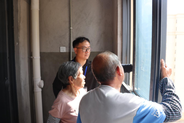 随着居民们的陆续到来,交房现场渐渐热闹起来。项目团队耐心细致地引导居民们完成签到、住户登记、领取两书、拿钥匙等各项手续。过程中,他们不仅为居民们详细解释住宅质量保证书、住宅使用说明书的内容,更是细致地介绍保修条款。在房屋验收环节,项目团队细心地陪同居民检查每一个角落,主动为居民解答各种疑问,提供装修等实用建议,确保品质交付。这份专业与细心,让居民真实感受到家的安心与温暖。