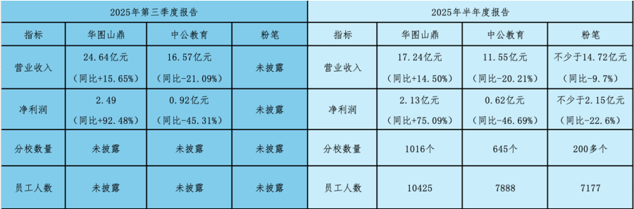 2025年华图山鼎、中公教育、粉笔主要经营数据